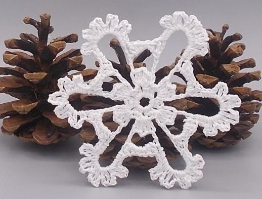 Vánoční vločka o průměru cca 8 cm, sněhově bílé barvy. Je háčkovaná ze 100% bavlny značky Sněhurka.