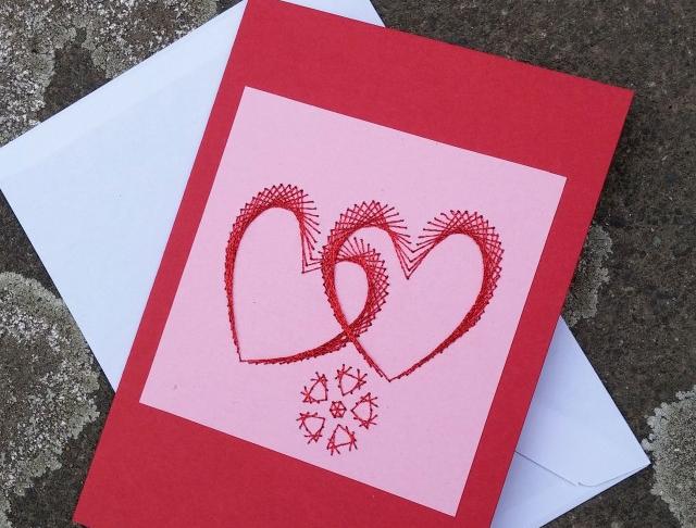 Luxusní blahopřání ke svatbě nebo pro zamilované vytvořené technikou nitěné grafiky.