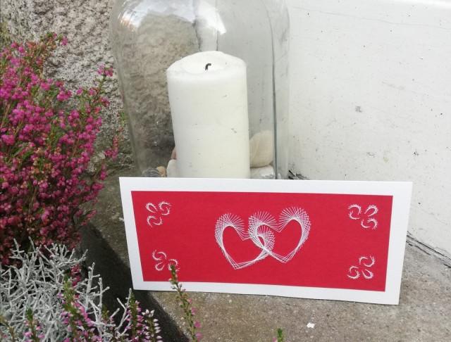 Luxusní darovací blahopřání na peníze ke svatbě vytvořené technikou nitěné grafiky.