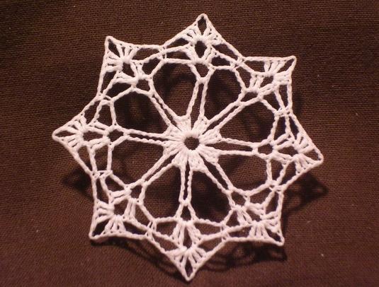 Háčkovaná vločka z tenké 100% bavlněné příze, je vypnutá a silně naškrobená, takže krásně drží tvar. Barva bílá.