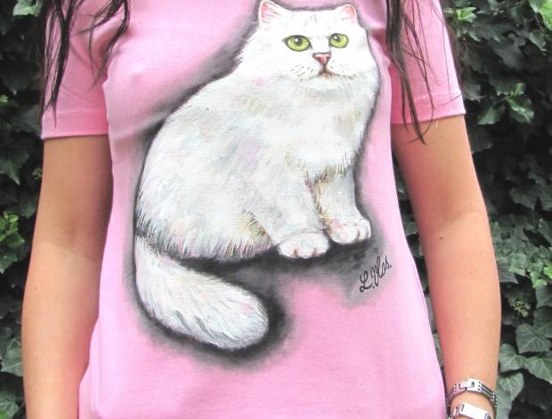 Ručně malované dámské tričko s motivem kočičky.Stačí zadat velikost a barevnost trička. Použité barvy zn. Pébéo zajišťují při praní z rubu na 30°C stálobarevnost. Žehlit též z rubu. Možnost odběru v Pardubicích.
