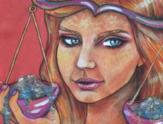 Ručně malované dámské tričko s originálním motivem znamení váhy, na které byly použity metalické barvy. Cihlově červené (teracota) tričko zn. Lambeste je vyšší gramáže, ze 100% bavlna, s dlouhým rukávem a kulatým výstřihem. Od horního okraje výstřihu měří 60 cm, na šířku 37 cm. Použité textilní barvy zn. Pébéo zajišťují při praní z rubu na 30°C stálobarevnost. Možnost odběru v Pardubicích.