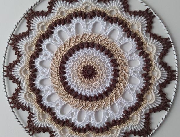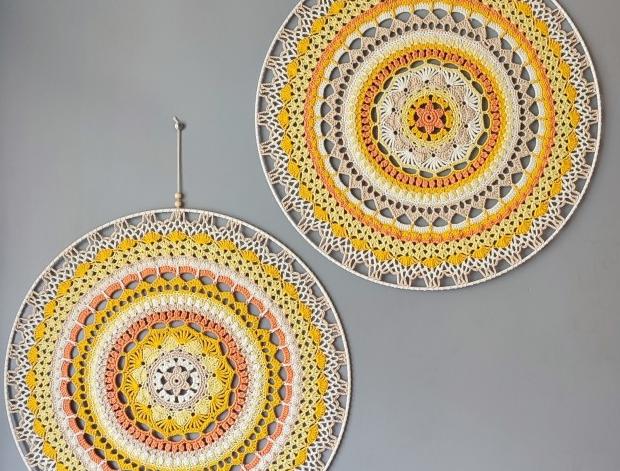 V mé nabídce najdete háčkované meditační mandaly nejen k zavěšení, ale i jako kuchyňské prostírání a koberce a mnoho dalšího. Novinek bude mnoho.